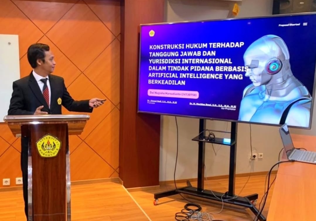 JAKARTA — Mahasiswa Program Doktor Ilmu Hukum Universitas Borobudur, Dwi Nugroho Marsudianto, menegaskan perkembangan kecerdasan artificial atau Artificial Intelligence (AI) yang melesat cepat dalam dua dekade terakhir mulai menabrak batas-batas klasik hukum pidana. AI kini tidak lagi sekadar alat bantu teknologi, tetapi telah bertransformasi menjadi sistem otonom yang mampu belajar, mengambil keputusan sendiri, dan menimbulkan dampak hukum nyata. Kondisi ini memunculkan kekosongan serius dalam sistem hukum Indonesia yang hingga kini masih memandang AI semata sebagai objek, bukan entitas dengan kapasitas bertindak.