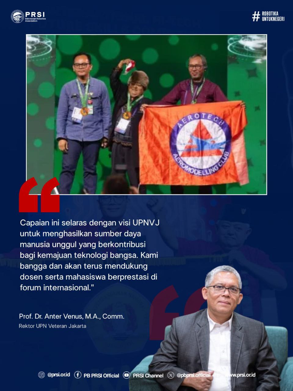 “Capaian ini selaras dengan visi UPNVJ untuk menghasilkan sumber daya manusia unggul yang berkontribusi bagi kemajuan teknologi bangsa. Kami bangga dan akan terus mendukung dosen serta mahasiswa berprestasi di forum internasional." Ujarnya