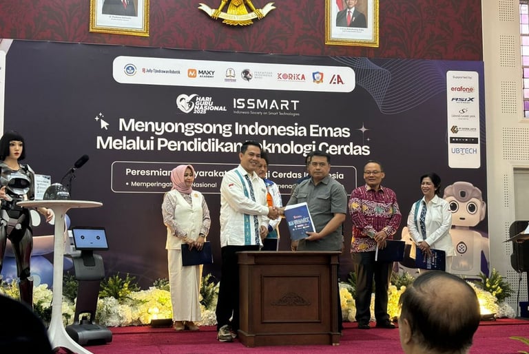 Jakarta, — Persatuan Robotika Seluruh Indonesia (PRSI) menghadiri acara peluncuran Masyarakat Teknologi Cerdas Indonesia yang digelar oleh Indonesia Society on Smart Technologies (IS-SMART) di Aula Heritage, Gedung Kementerian Koordinator Bidang Pembangunan Manusia dan Kebudayaan (Kemenko PMK), Jakarta, Rabu (03/12/25).