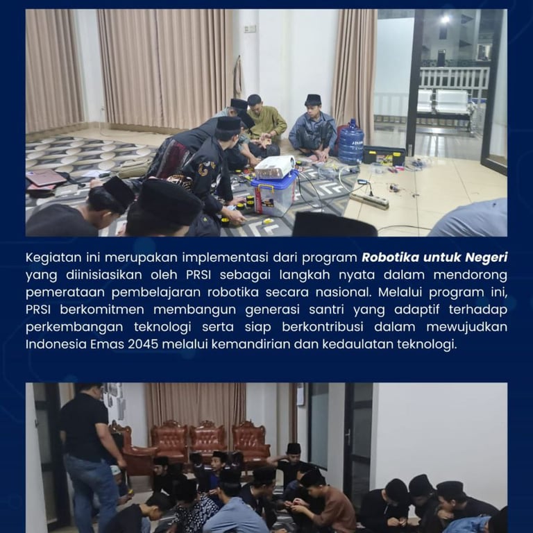 Program tersebut merupakan implementasi dari inisiatif Robotika untuk Negeri yang digagas oleh PRSI sebagai langkah nyata dalam mendorong pemerataan pembelajaran robotika di berbagai wilayah. Melalui kegiatan ini, PRSI berharap para santri dapat mengenal, memahami, dan mengembangkan keterampilan di bidang robotika sejak dini sebagai bekal menghadapi tantangan era teknologi.