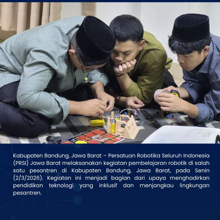 Kabupaten Bandung, Jawa Barat – Persatuan Robotika Seluruh Indonesia (PRSI) Jawa Barat melaksanakan kegiatan pembelajaran robotik di salah satu pesantren di Kabupaten Bandung, Jawa Barat, pada Senin (2/3/2026). Kegiatan ini menjadi bagian dari komitmen PRSI dalam memperluas akses pendidikan teknologi hingga ke lingkungan pesantren.